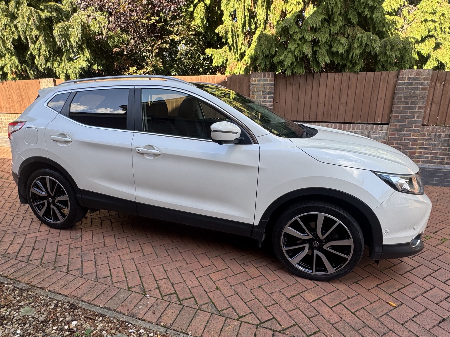 Finished in Pearlescent Storm White paintwork with contrasting Black Heated Leather Sports seats, its a great combination. This Qashqai is in excellent condition and is a real credit to it's previous owner. This was a demonstator at a Nissan Main Dealership for 10 Months then owned by the same private owner since then.